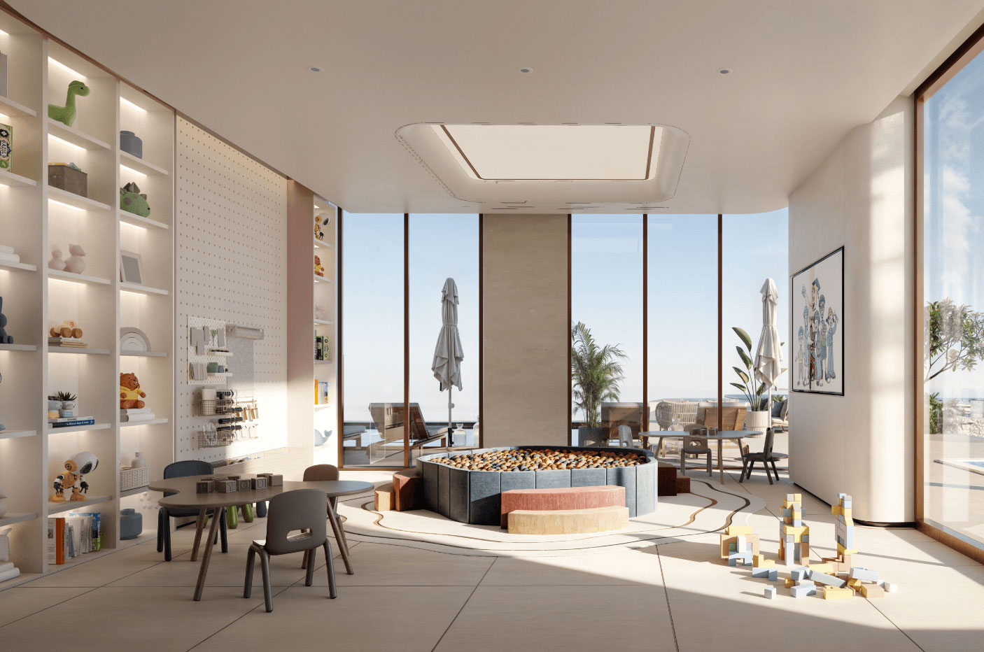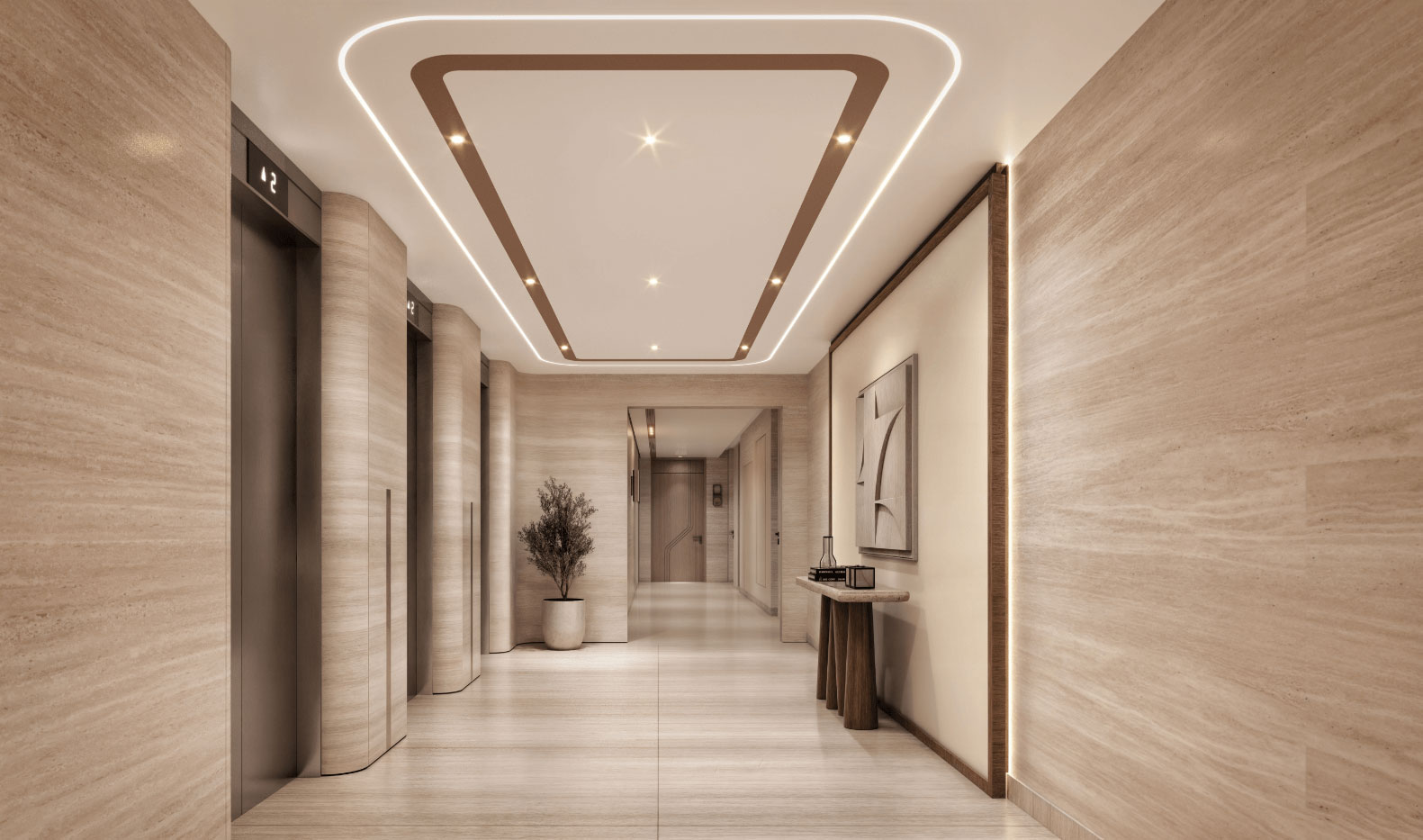 Experience spatially balanced interiors defined by elegant lines and refined finishes. Expansive floor-to-ceiling windows frame sweeping views that emphasize a layered, sophisticated palette of marble, porcelain, warm veneers and soft metallics. From serene living areas to opulent, spa-style bathrooms, every element is designed to elevate and inspire.