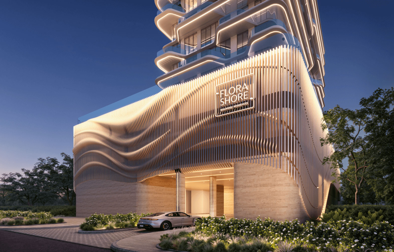 Step into Flora Shore, where the bustle of the city melts away. Here, panoramic views unfold to understated elegance that is open, yet intimate, with graceful curves and expansive spaces that welcome you into a world of refined sophistication. From its sculpted façade, to its thoughtfully designed lobby, every detail is crafted to inspire, offering a luxurious lifestyle that is unmistakably yours.
